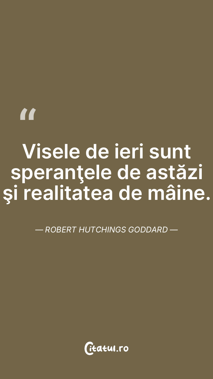 Visele de ieri sunt speranţele de astăzi şi realitatea de mâine. Robert Hutchings Goddard