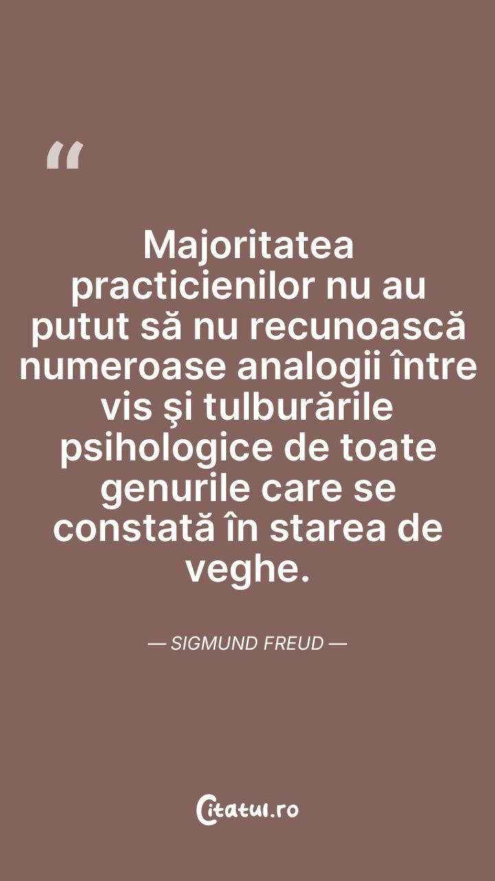 Majoritatea practicienilor nu au putut să nu recunoască numeroase analogii între vis şi tulburările psihologice de toate genurile care se constată în starea de veghe. Sigmund Freud