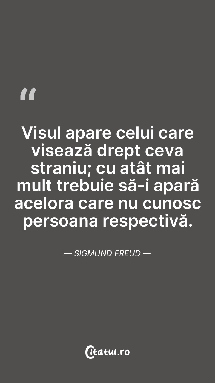 Visul apare celui care visează drept ceva straniu; cu atât mai mult trebuie să-i apară acelora care nu cunosc persoana respectivă. Sigmund Freud