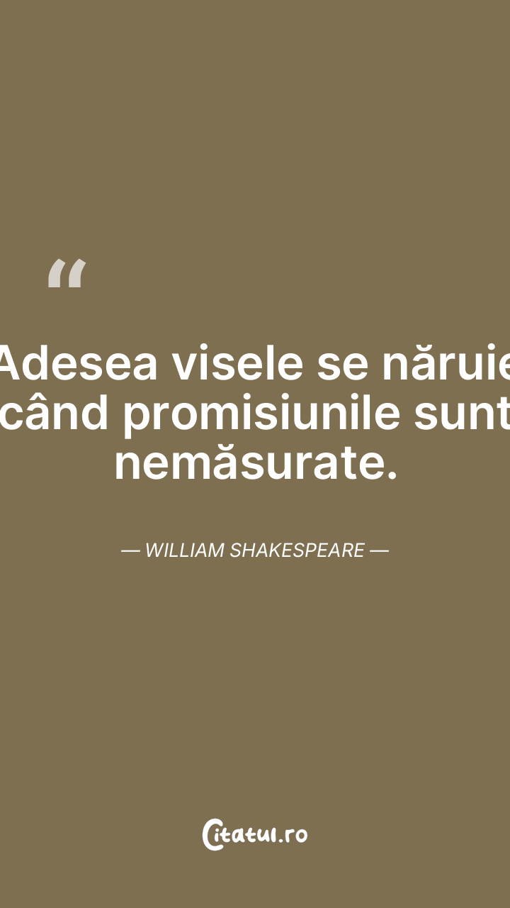 Adesea visele se năruie când promisiunile sunt nemăsurate. William Shakespeare