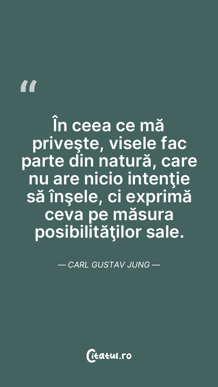 În ceea ce mă priveşte, visele fac parte din natură, care nu are nicio intenţie să înşele, ci exprimă ceva pe măsura posibilităţilor sale. Carl Gustav Jung