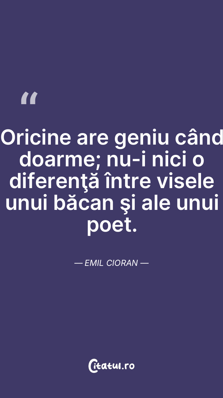 Oricine are geniu când doarme; nu-i nici o diferenţă între visele unui băcan şi ale unui poet. Emil Cioran