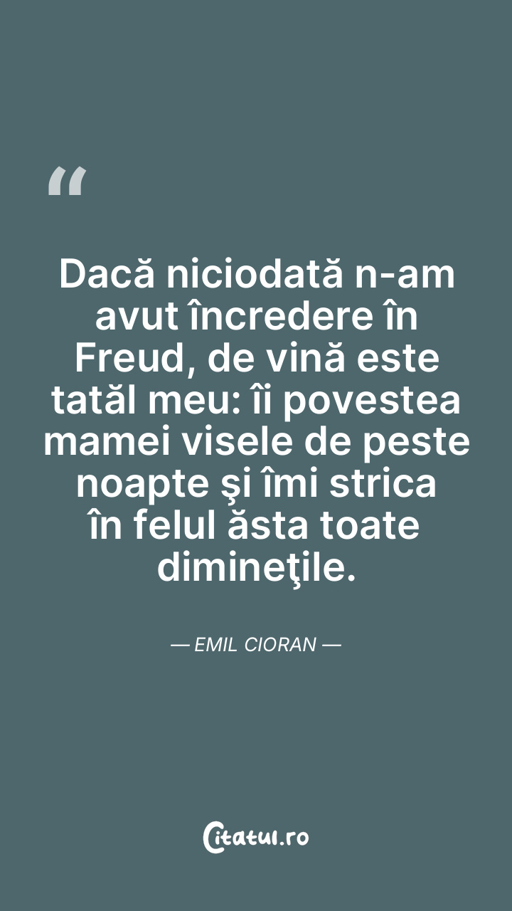 Dacă niciodată n-am avut încredere în Freud, de vină este tatăl meu: îi povestea mamei visele de peste noapte şi îmi strica în felul ăsta toate dimineţile. Emil Cioran