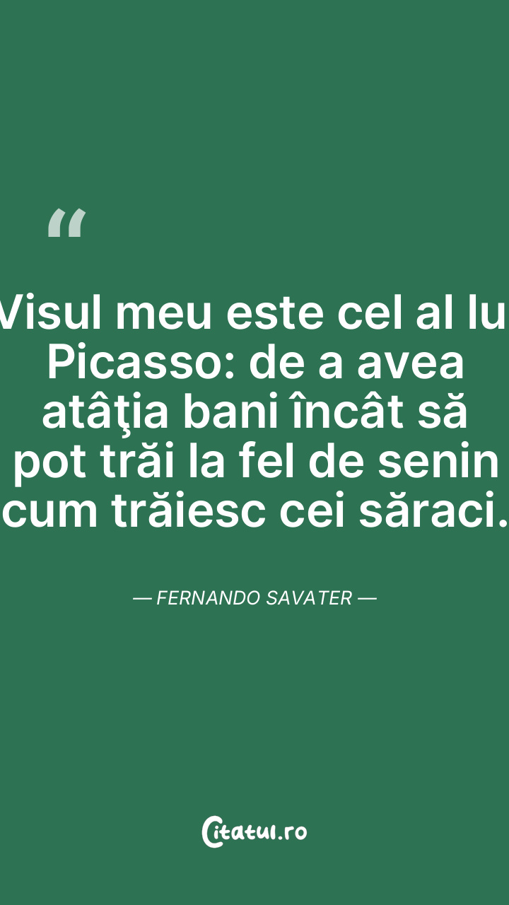 Visul meu este cel al lui Picasso: de a avea atâţia bani încât să pot trăi la fel de senin cum trăiesc cei săraci. Fernando Savater
