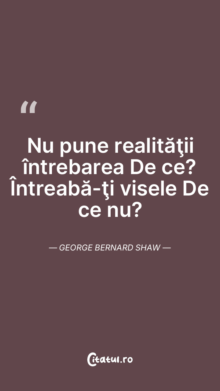 Nu pune realităţii întrebarea De ce? Întreabă-ţi visele De ce nu? George Bernard Shaw