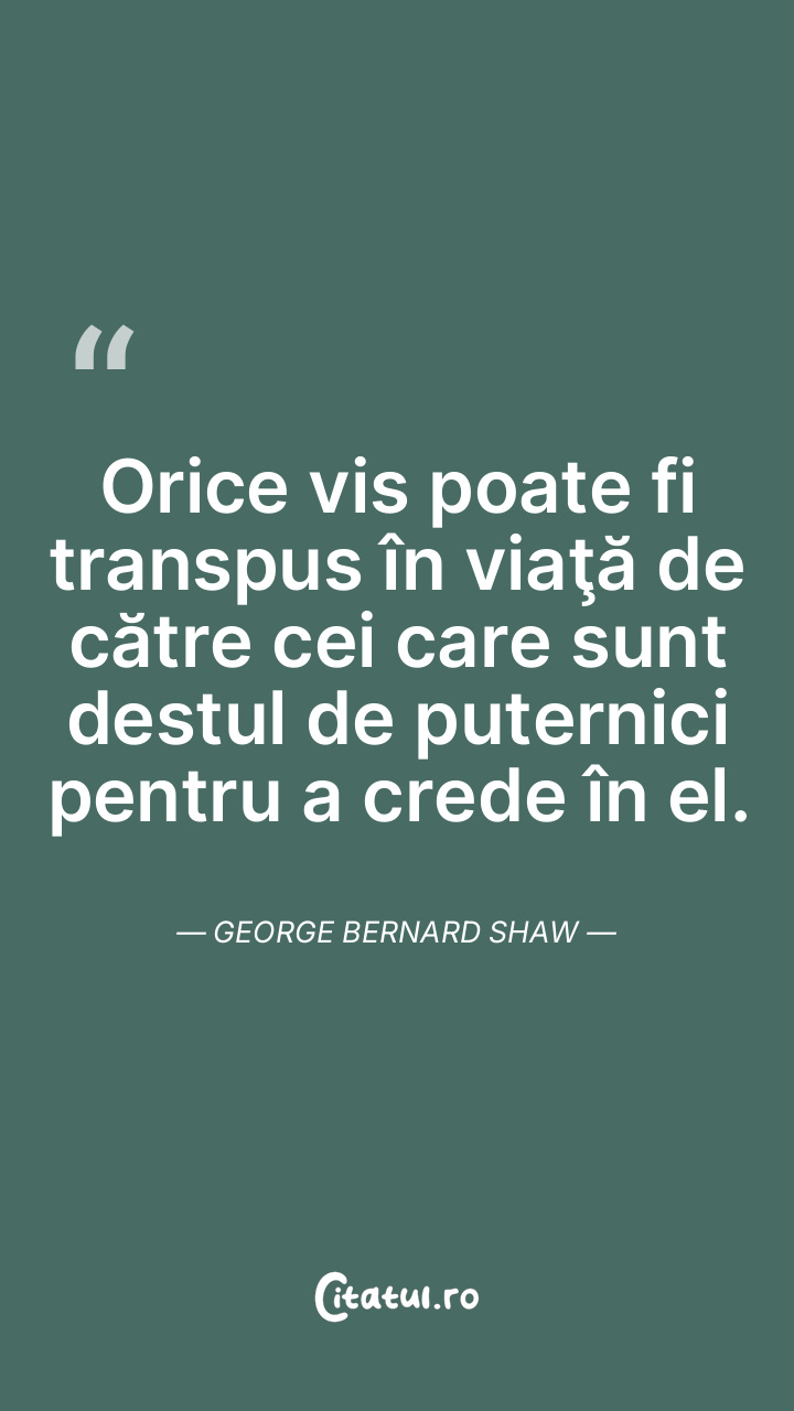Orice vis poate fi transpus în viaţă de către cei care sunt destul de puternici pentru a crede în el. George Bernard Shaw