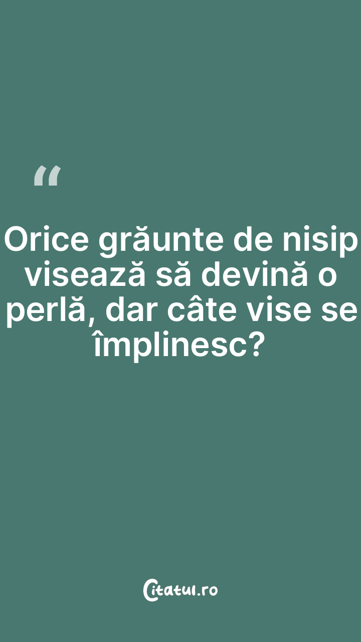 Orice grăunte de nisip visează să devină o perlă, dar câte vise se împlinesc?