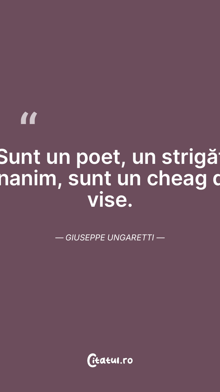 Sunt un poet, un strigăt unanim, sunt un cheag de vise. Giuseppe Ungaretti