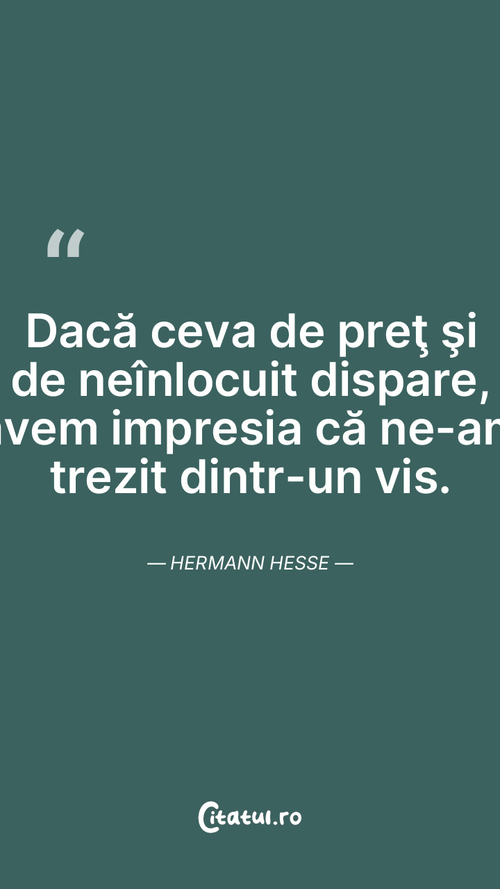 Dacă ceva de preţ şi de neînlocuit dispare, avem impresia că ne-am trezit dintr-un vis. Hermann Hesse