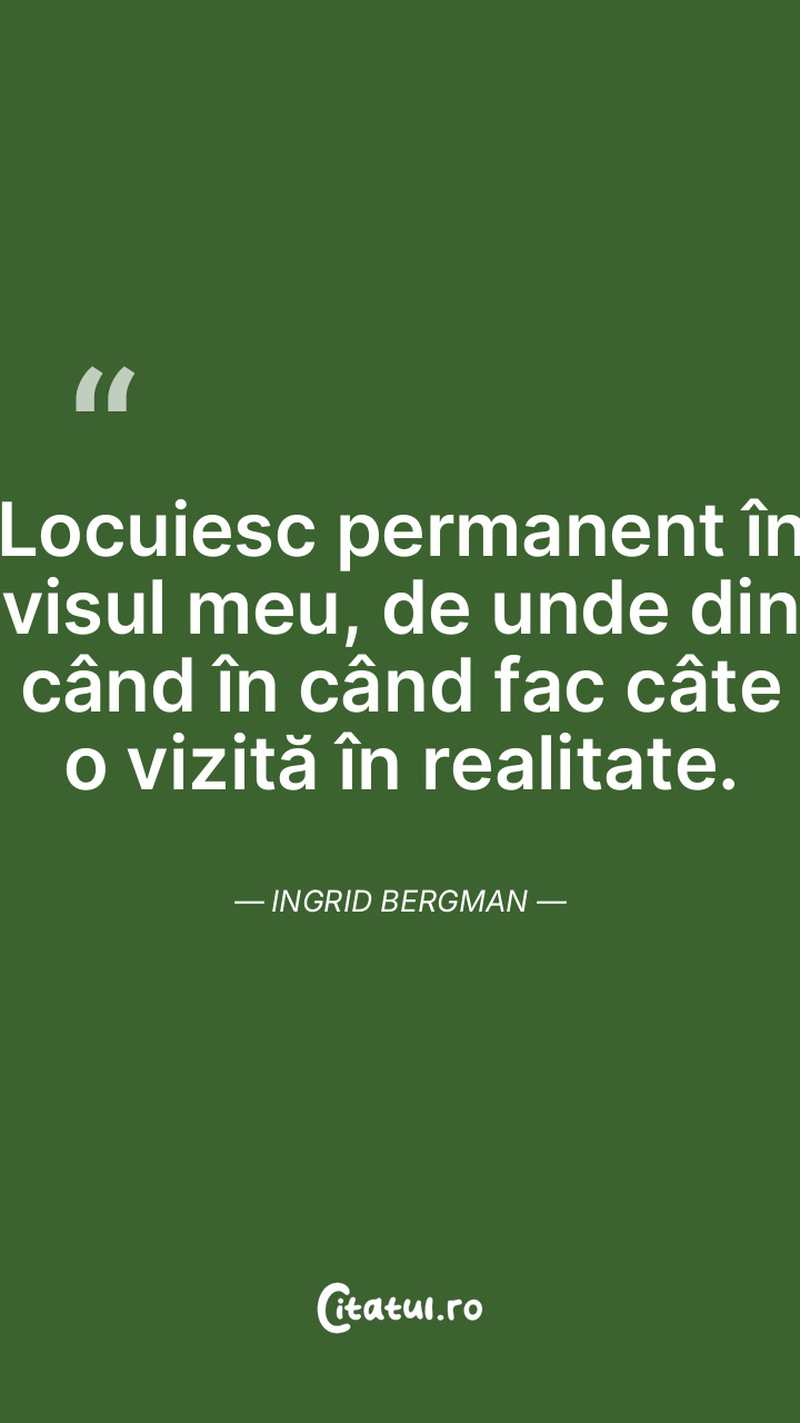 Locuiesc permanent în visul meu, de unde din când în când fac câte o vizită în realitate. Ingrid Bergman