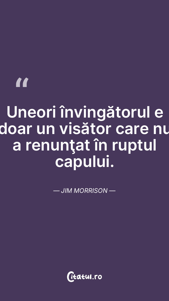 Uneori învingătorul e doar un visător care nu a renunţat în ruptul capului. Jim Morrison