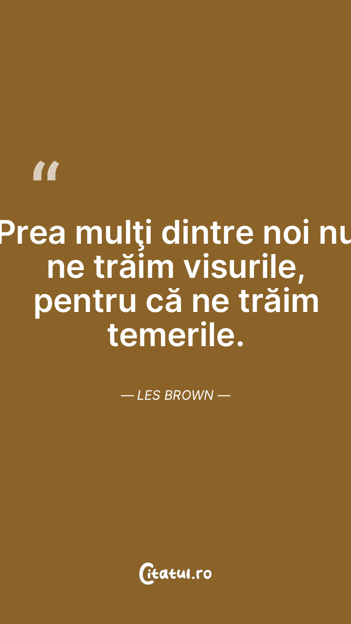 Prea mulţi dintre noi nu ne trăim visurile, pentru că ne trăim temerile. Les Brown