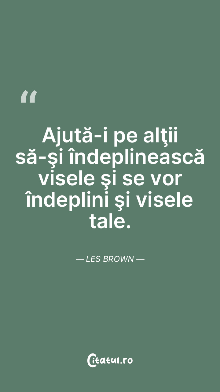 Ajută-i pe alţii să-şi îndeplinească visele şi se vor îndeplini şi visele tale. Les Brown