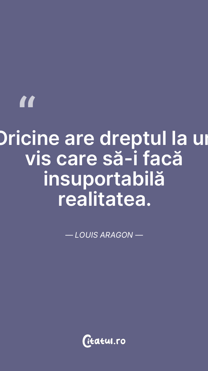 Oricine are dreptul la un vis care să-i facă insuportabilă realitatea. Louis Aragon