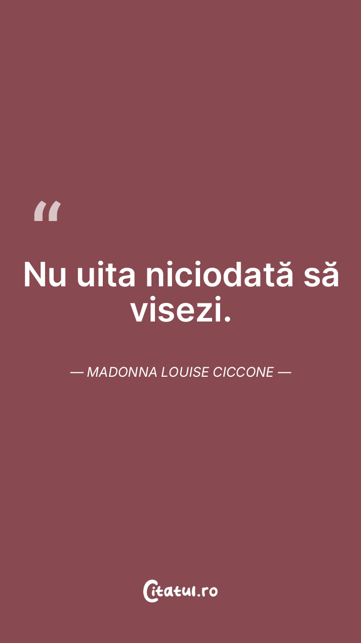 Nu uita niciodată să visezi. Madonna Louise Ciccon...