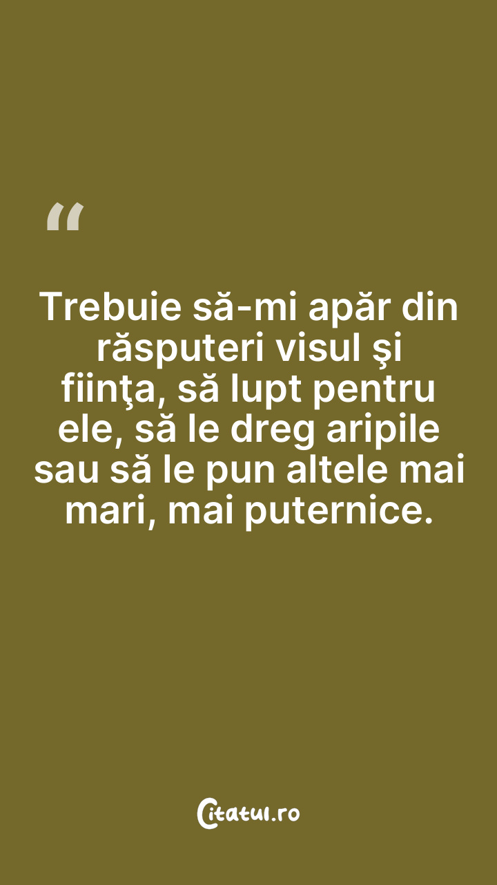 Trebuie să-mi apăr din răsputeri visul şi fiinţa, ...
