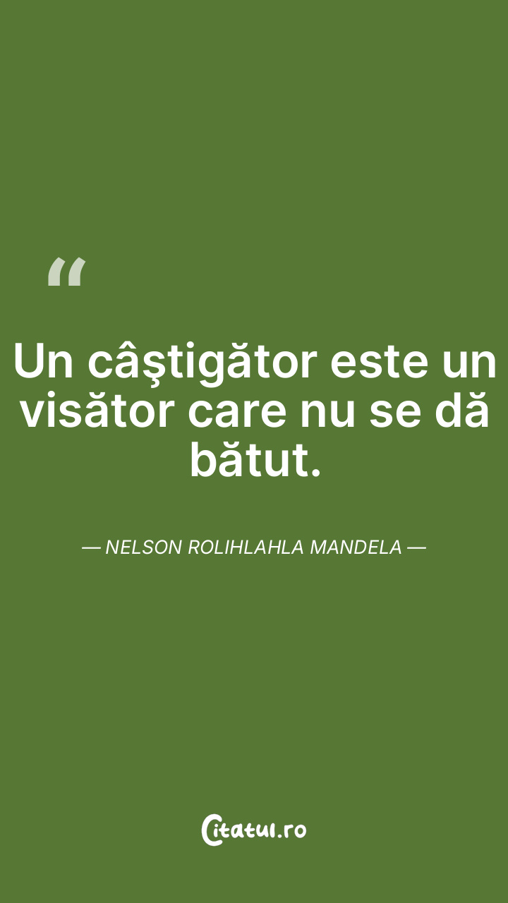 Un câştigător este un visător care nu se dă bătut. Nelson Rolihlahla Mandela