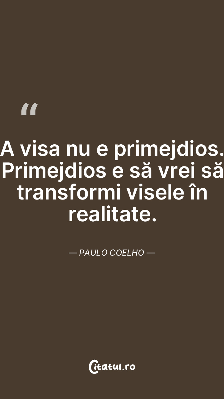 A visa nu e primejdios. Primejdios e să vrei să transformi visele în realitate. Paulo Coelho