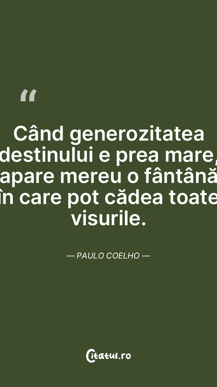 Când generozitatea destinului e prea mare, apare mereu o fântână în care pot cădea toate visurile. Paulo Coelho