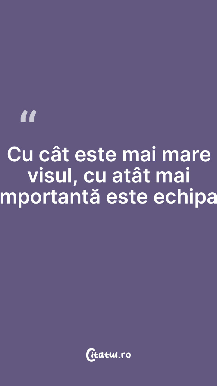 Cu cât este mai mare visul, cu atât mai importantă este echipa.