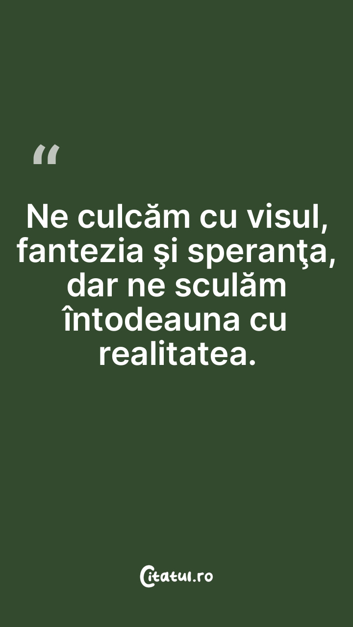 Ne culcăm cu visul, fantezia şi speranţa, dar ne sculăm întodeauna cu realitatea.