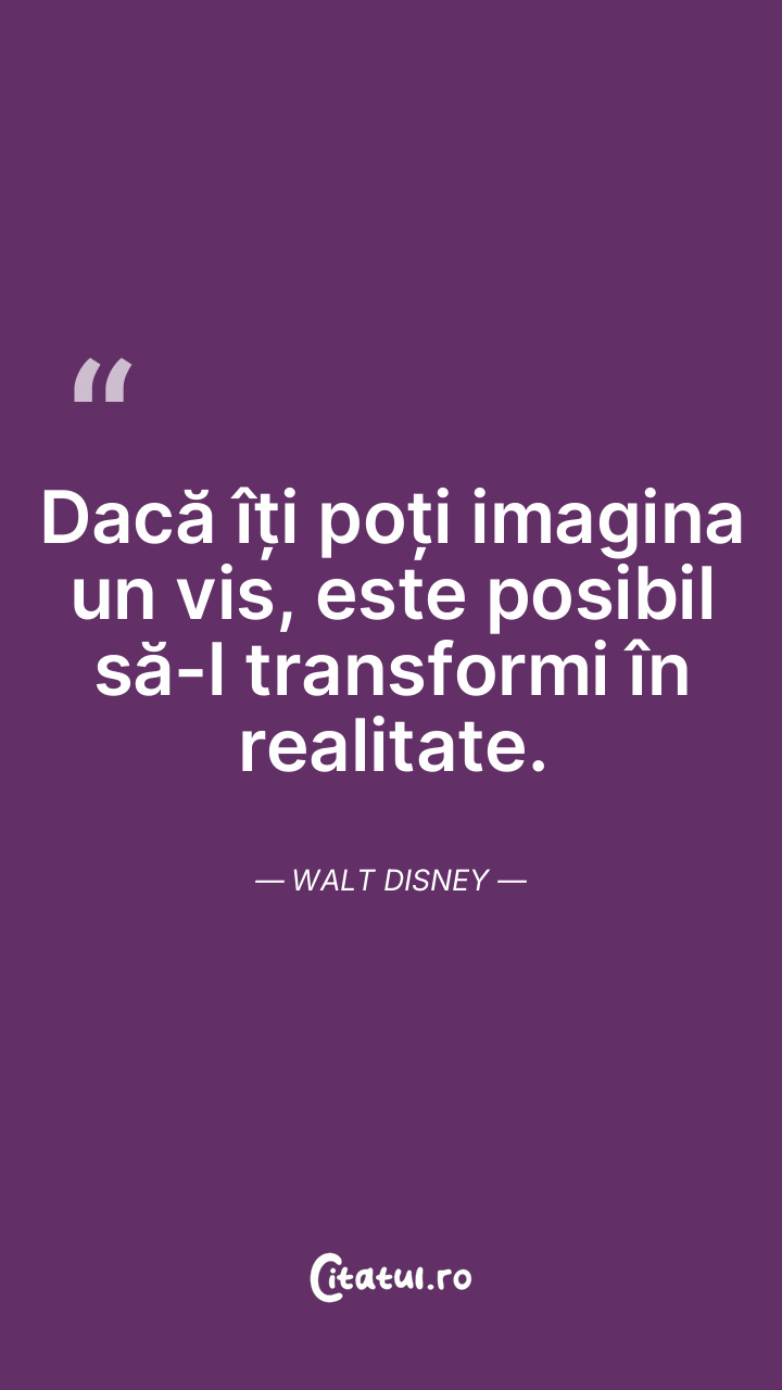 Dacă îți poți imagina un vis, este posibil să-l transformi în realitate. Walt Disney