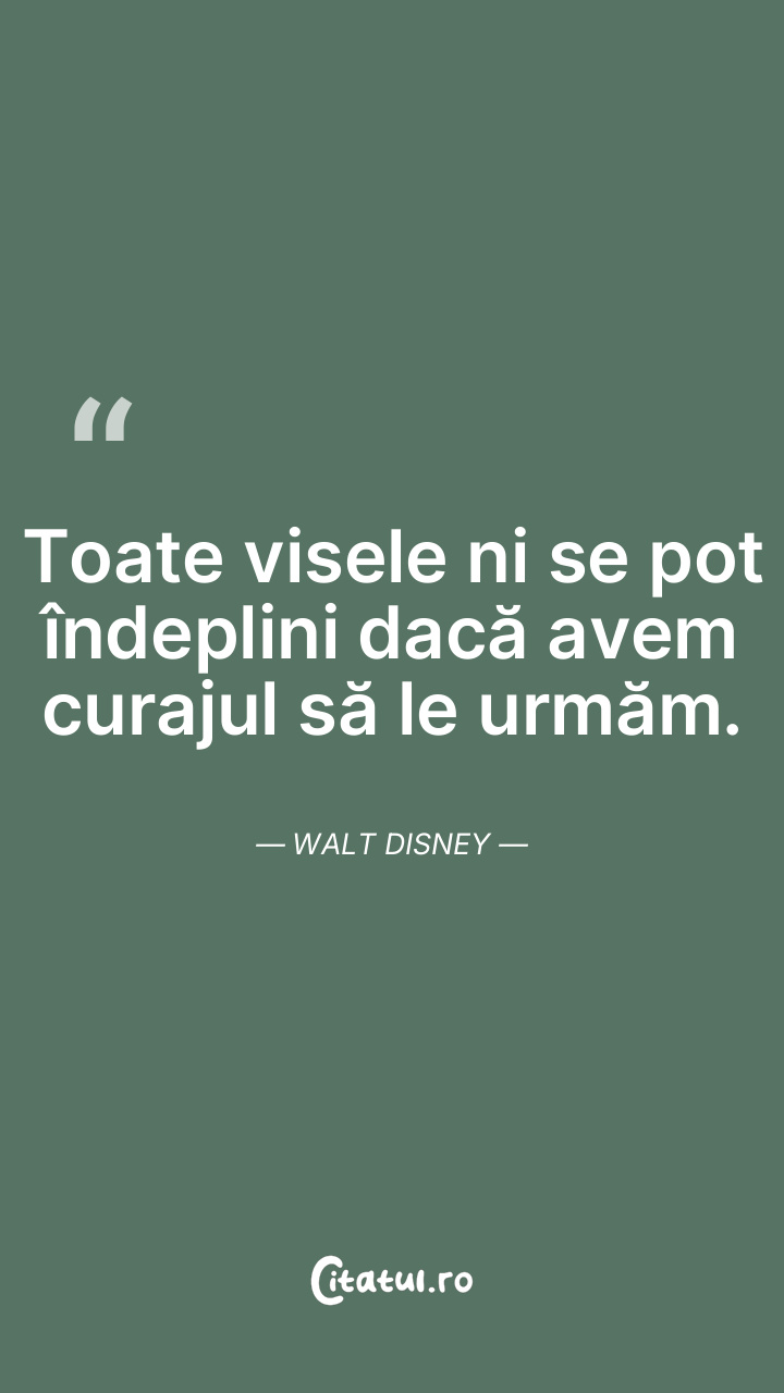 Toate visele ni se pot îndeplini dacă avem curajul să le urmăm. Walt Disney