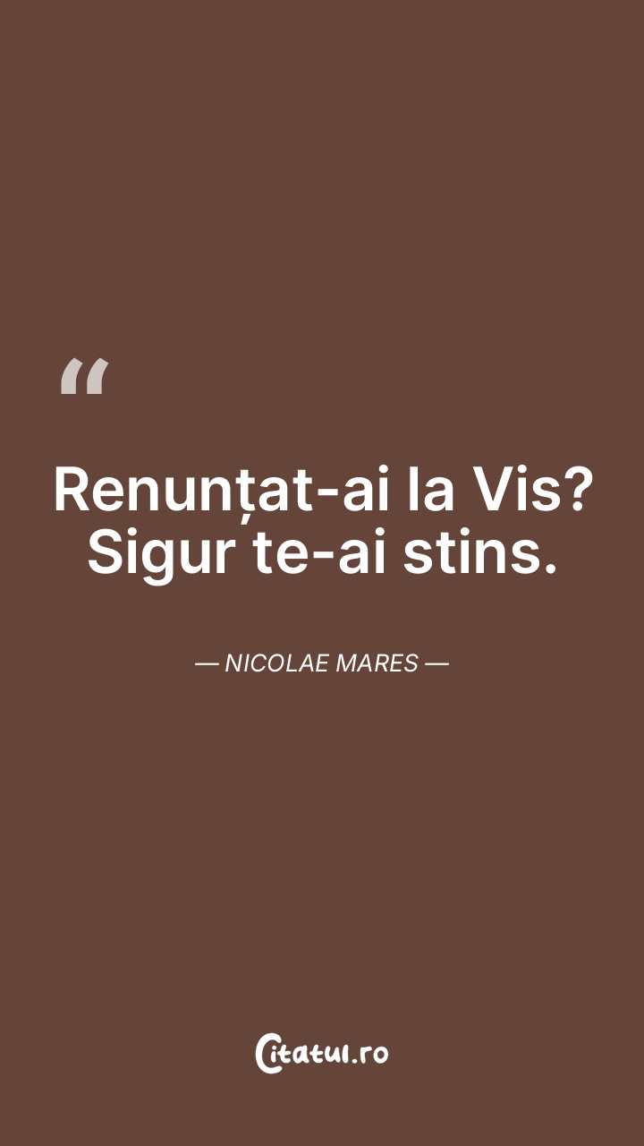 Renunțat-ai la Vis? Sigur te-ai stins. Nicolae Mares