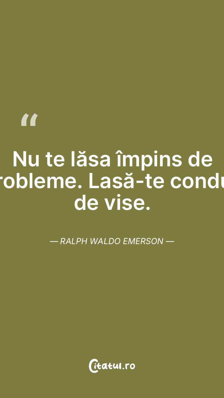 Nu te lăsa împins de probleme. Lasă-te condus de vise. Ralph Waldo Emerson