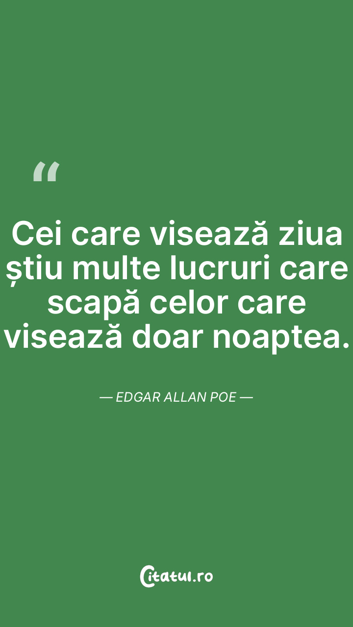 Cei care visează ziua știu multe lucruri care scapă celor care visează doar noaptea. Edgar Allan Poe