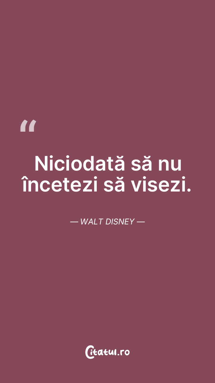 Niciodată să nu încetezi să visezi. Walt Disney