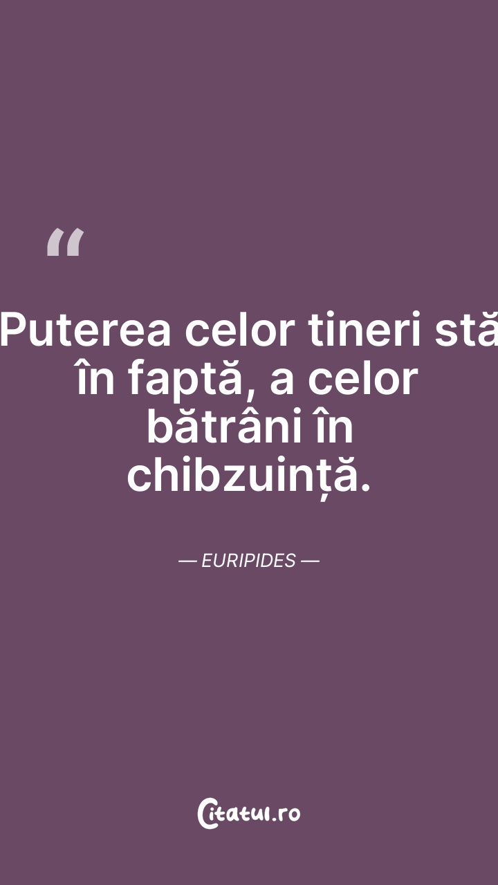 Puterea celor tineri stă în faptă, a celor bătrâni în chibzuință. Euripides