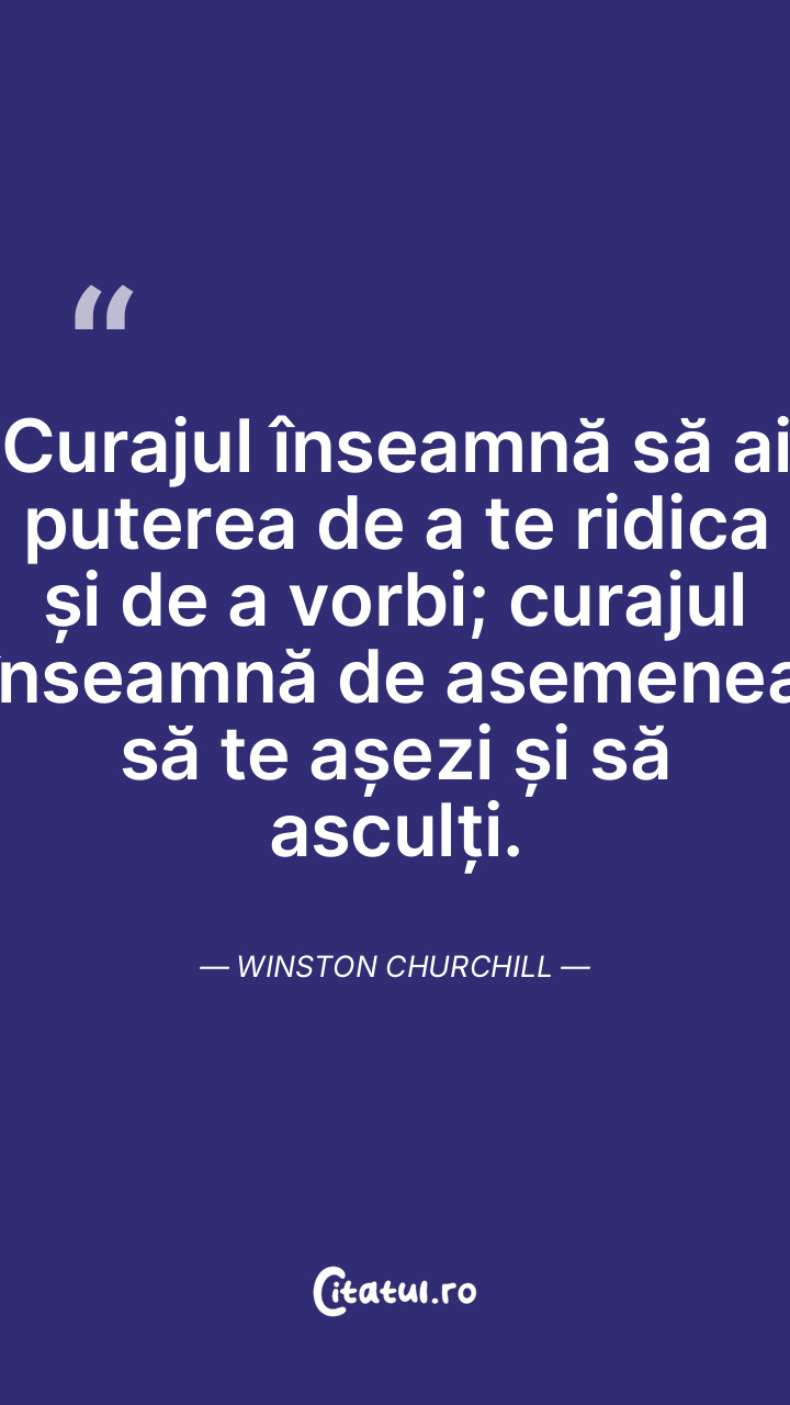 Curajul înseamnă să ai puterea de a te ridica și de a vorbi; curajul înseamnă de asemenea să te așezi și să asculți. Winston Churchill
