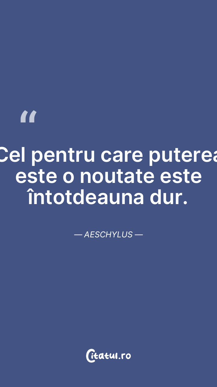 Cel pentru care puterea este o noutate este întotdeauna dur. Aeschylus