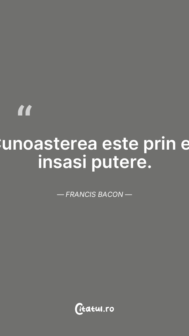 Cunoasterea este prin ea insasi putere. Francis Bacon