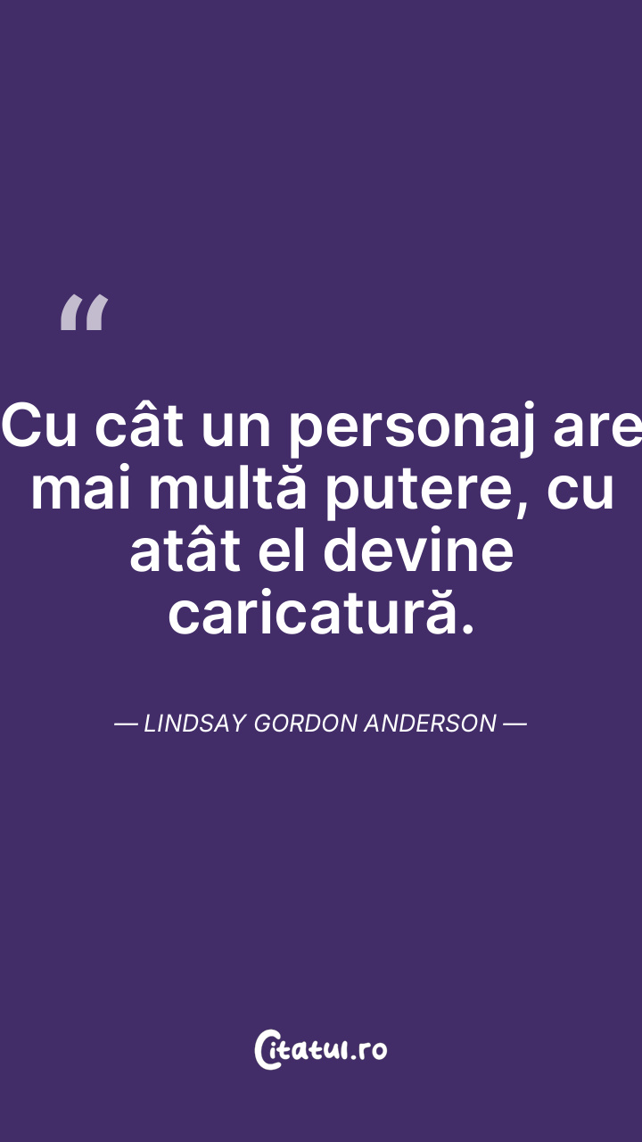 Cu cât un personaj are mai multă putere, cu atât el devine caricatură. Lindsay Gordon Anderson