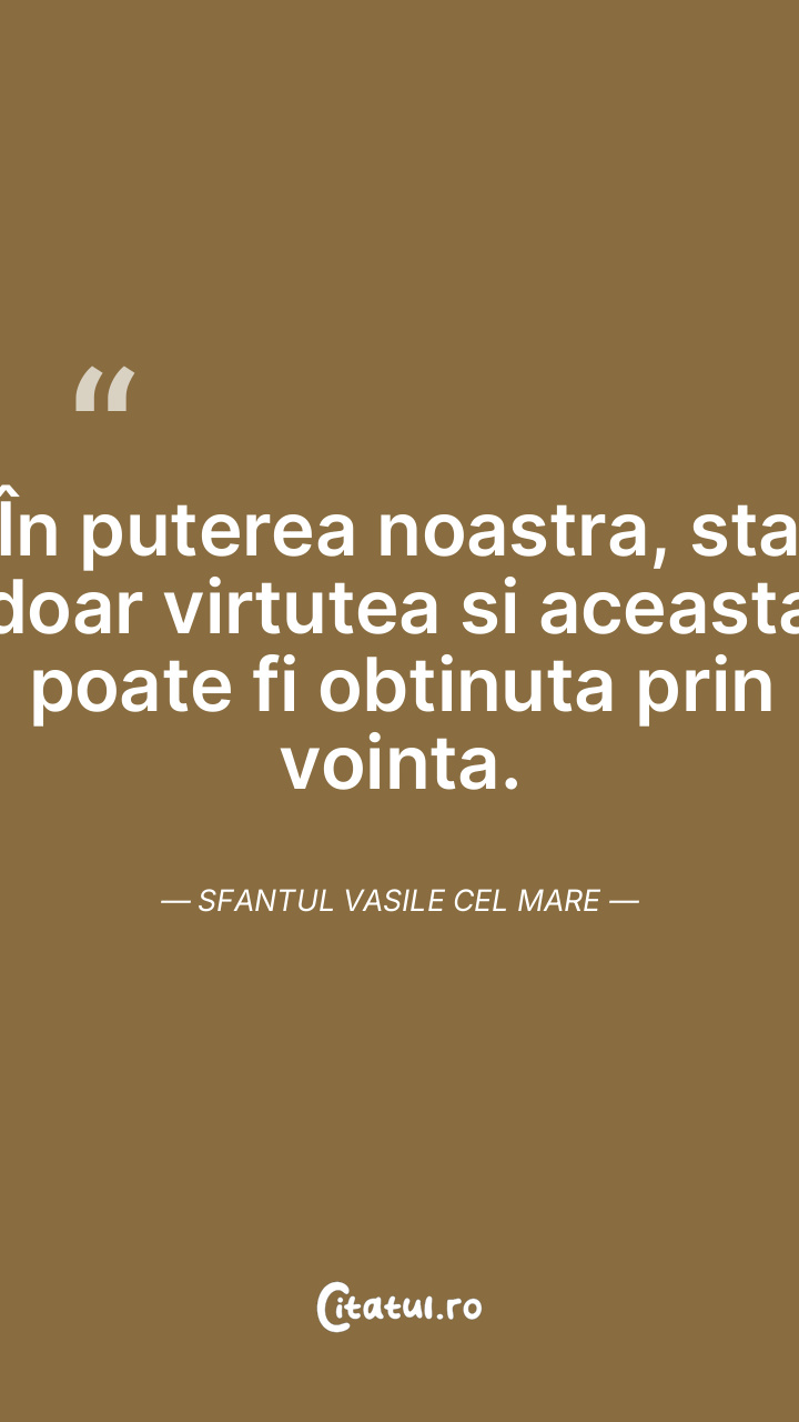 În puterea noastra, sta doar virtutea si aceasta poate fi obtinuta prin vointa. Sfantul Vasile cel Mare