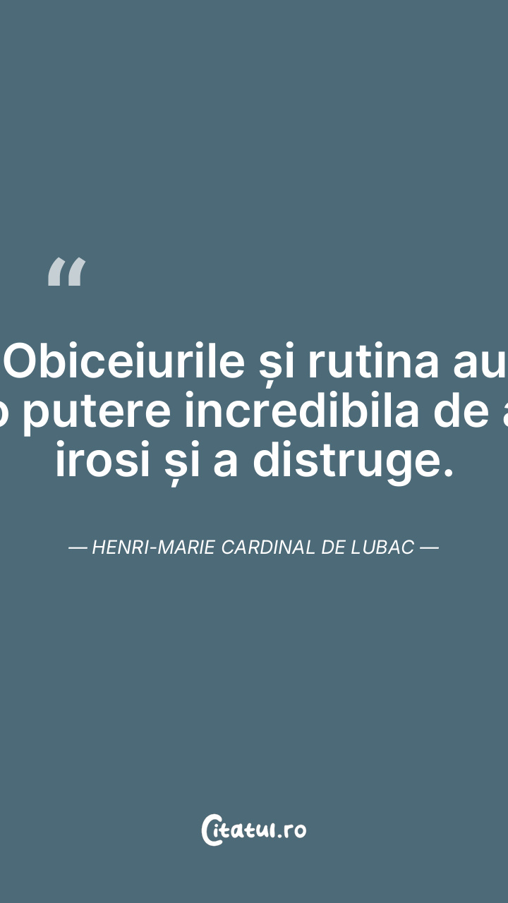 Obiceiurile și rutina au o putere incredibila de a irosi și a distruge. Henri-Marie Cardinal de Lubac