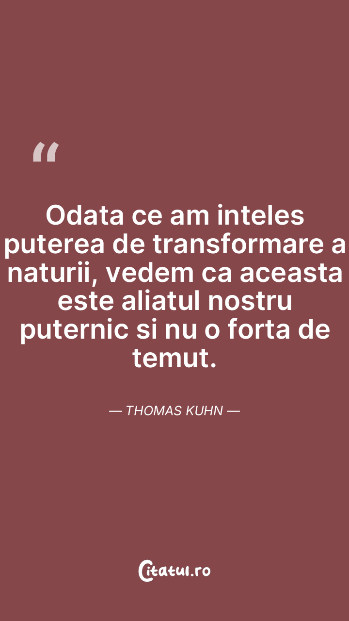 Odata ce am inteles puterea de transformare a naturii, vedem ca aceasta este aliatul nostru puternic si nu o forta de temut. Thomas Kuhn