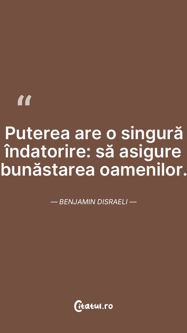 Puterea are o singură îndatorire: să asigure bunăstarea oamenilor. Benjamin Disraeli