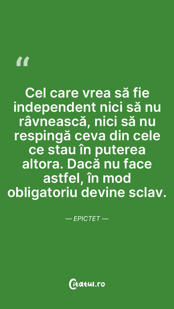 Cel care vrea să fie independent nici să nu râvnească, nici să nu respingă ceva din cele ce stau în puterea altora. Dacă nu face astfel, în mod obligatoriu devine sclav. Epictet