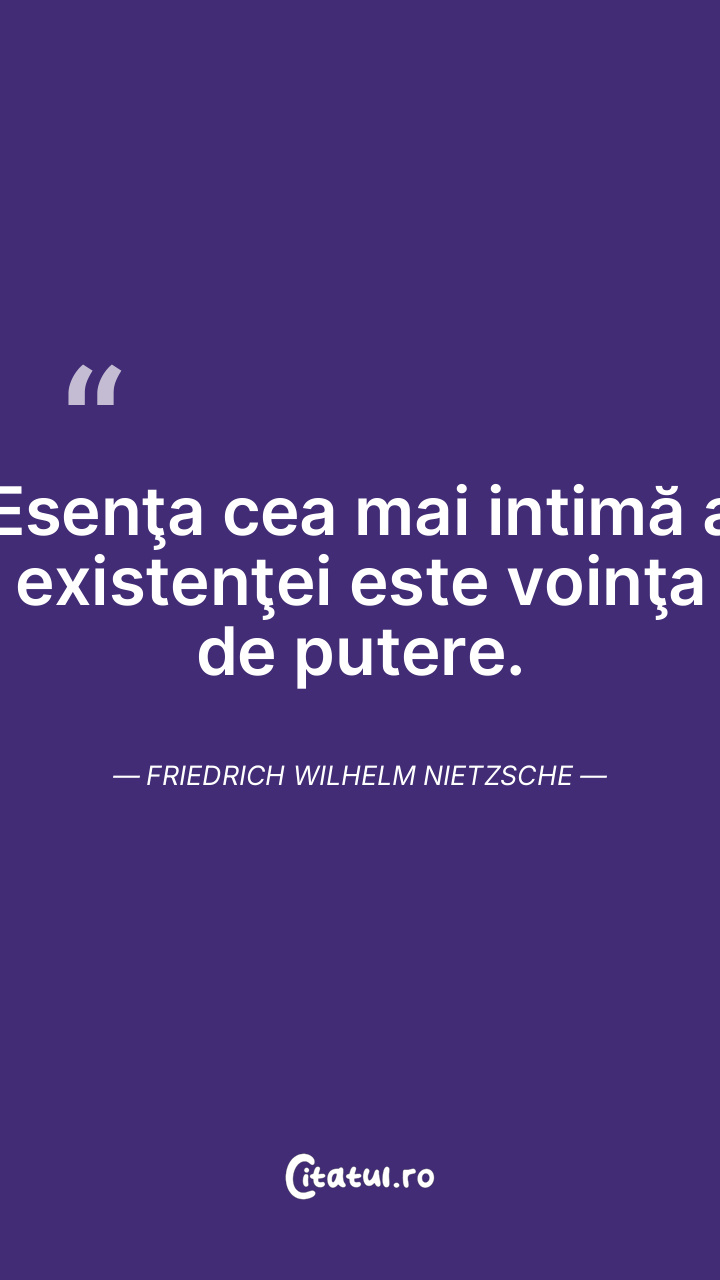 Esenţa cea mai intimă a existenţei este voinţa de putere. Friedrich Wilhelm Nietzsche