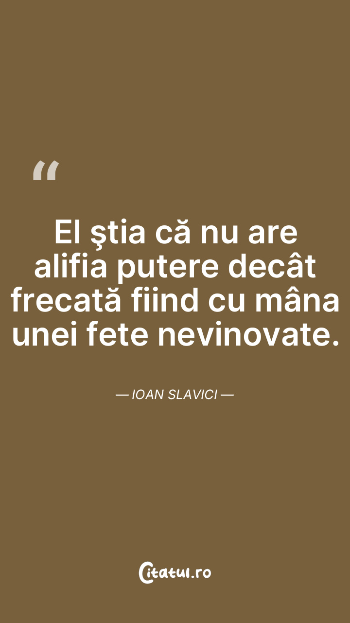 El ştia că nu are alifia putere decât frecată fiind cu mâna unei fete nevinovate. Ioan Slavici