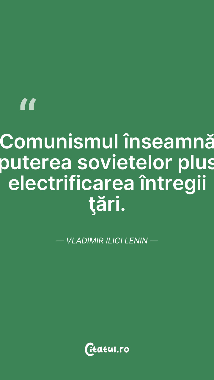 Comunismul înseamnă puterea sovietelor plus electrificarea întregii ţări. Vladimir Ilici Lenin
