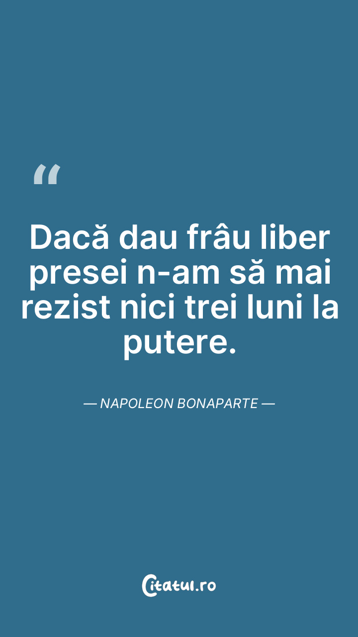 Dacă dau frâu liber presei n-am să mai rezist nici trei luni la putere. Napoleon Bonaparte