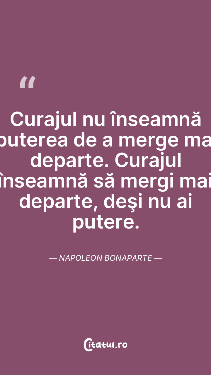 Curajul nu înseamnă puterea de a merge mai departe. Curajul înseamnă să mergi mai departe, deşi nu ai putere. Napoleon Bonaparte