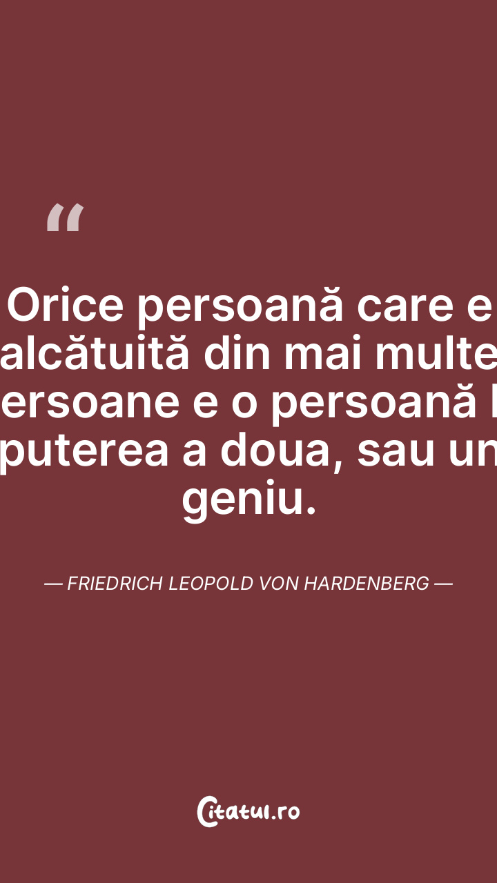 Orice persoană care e alcătuită din mai multe persoane e o persoană la puterea a doua, sau un geniu. Friedrich Leopold Von Hardenberg