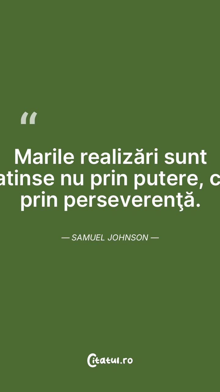 Marile realizări sunt atinse nu prin putere, ci prin perseverenţă. Samuel Johnson