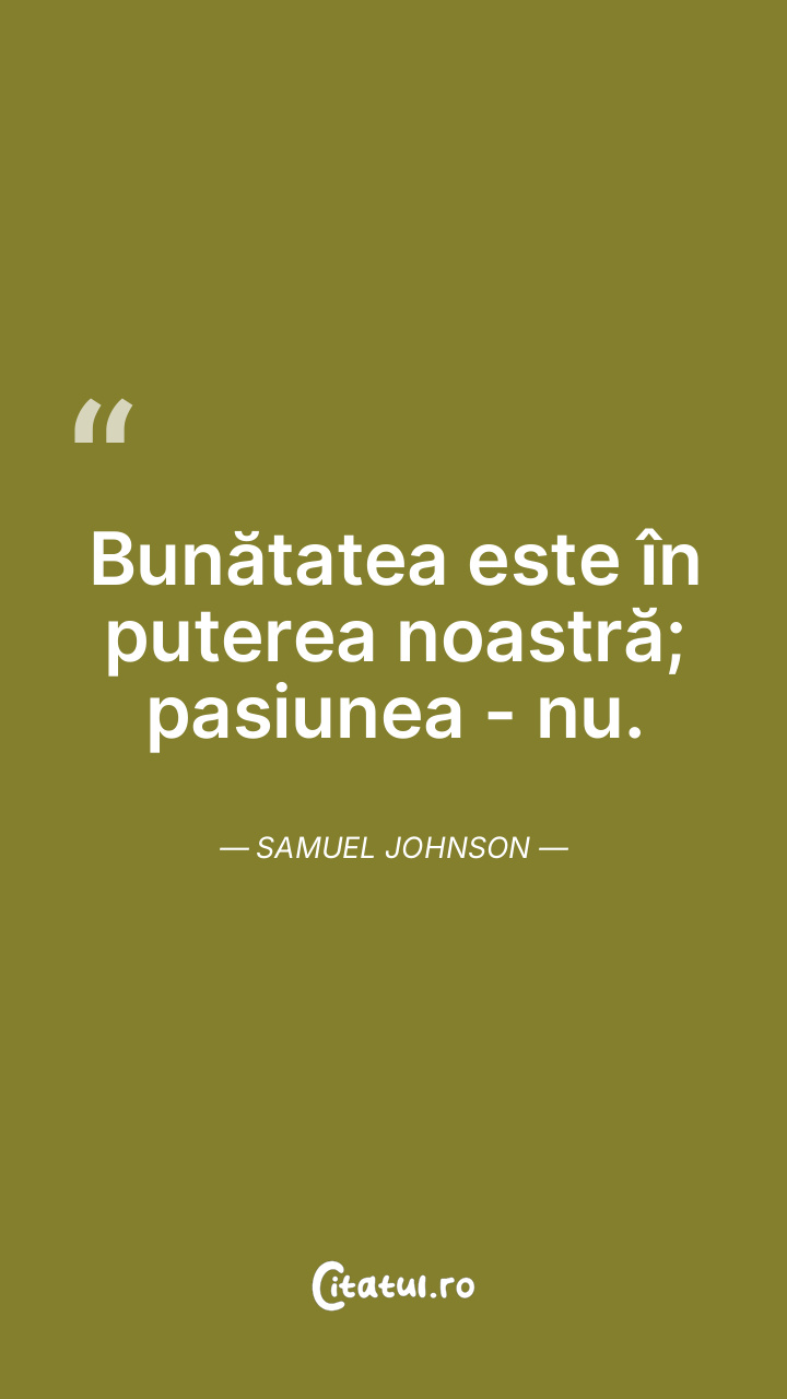Bunătatea este în puterea noastră; pasiunea - nu. Samuel Johnson