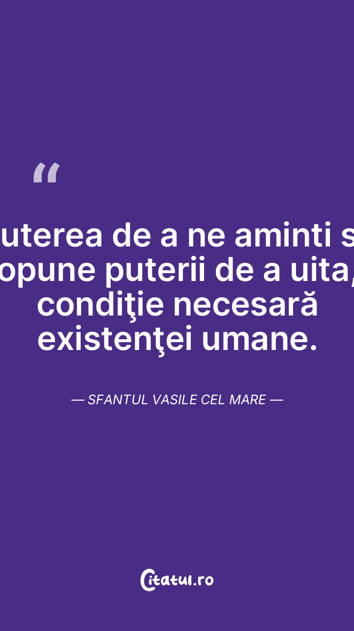 Puterea de a ne aminti se opune puterii de a uita, condiţie necesară existenţei umane. Sfantul Vasile cel Mare